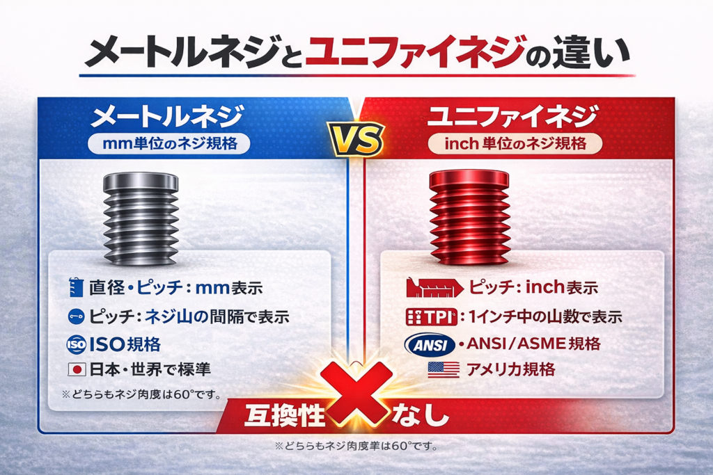 メートルネジとユニファイネジの違い