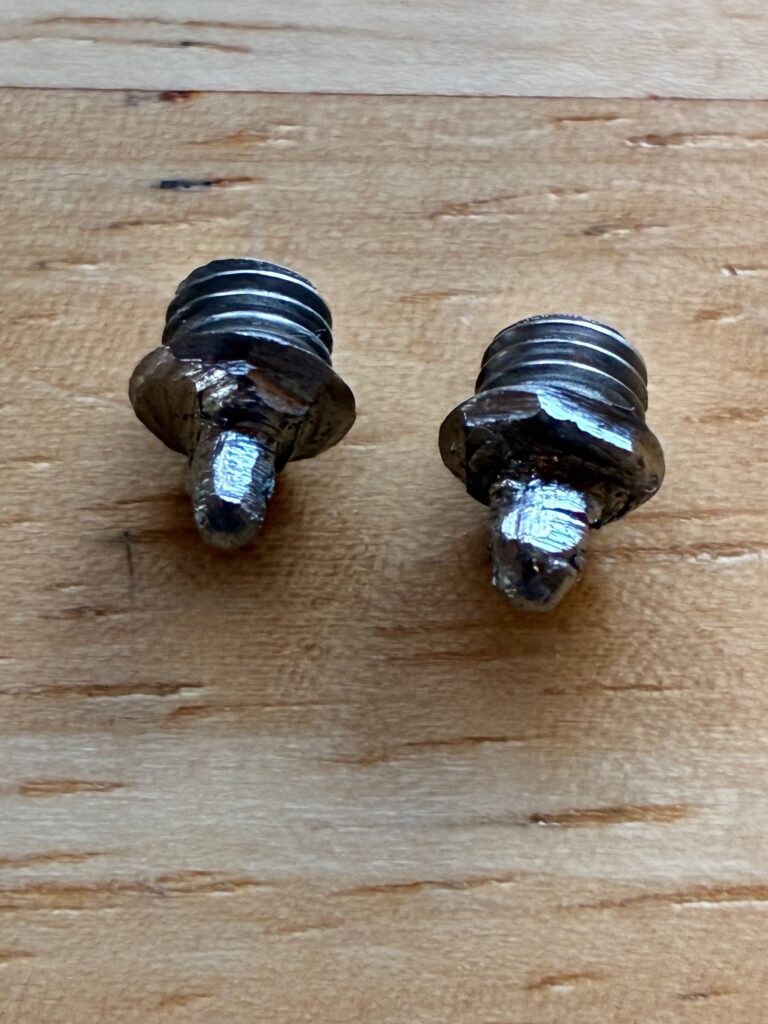 ナイキ エア ズーム ビクトリー 2のニードルピンが外せない。 下記の写真が添付されて、取り外し依頼がありました。 依頼内容 「スパイクのニードルピンが一本取れなくなってしまい、ピンの抜き取りをご依頼したいです。」 ピンの種類を確認したところ、ス... -