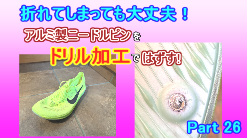 ナイキ・ドラゴンフライのニードルピンが取れない 今回のピン外しは、アルミ製のピンの取り外しです。ドリルを使って外しました。 依頼内容 スポーツ用品店で見てもらったが、難しいと言われた写真を確認したところ、ピンが折れておりアルミ製であれば、ド... -