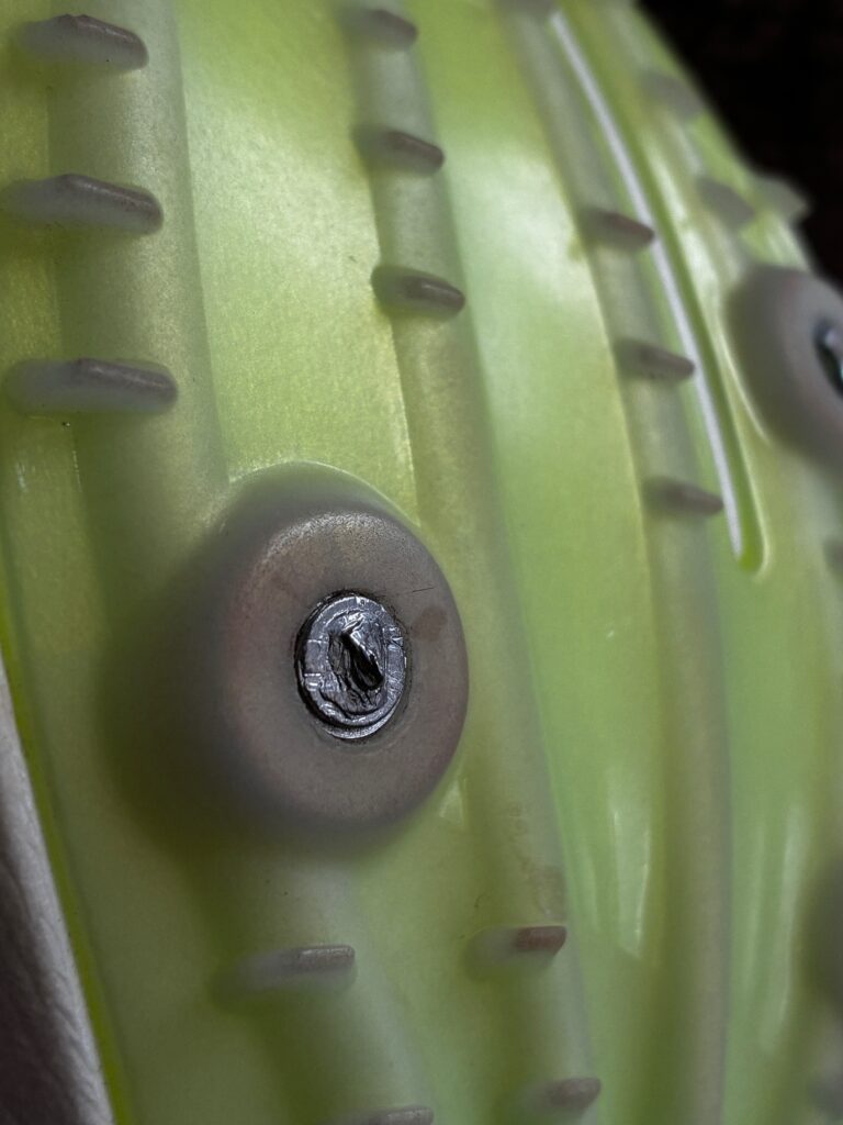 最近、アルミ製のピンが折れて、取り外しの依頼が多くなってきてます。アルミ製のピンは軽いのでスパイクを軽くするには良いですが、直ぐに摩耗してしまいます。アルミ製は早めに交換することで、取り付け時に締め付け過ぎても、ハンドルで取れる可能性が高いので、少し摩耗したた交換するようにしてください。